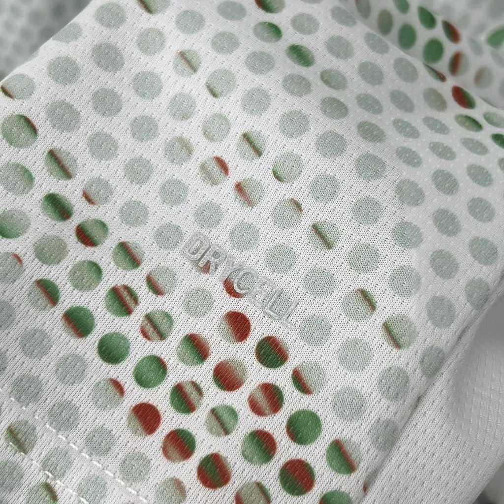 Además, la característica de absorción del sudor de la camiseta de la versión de jugador mantiene la humedad alejada del cuerpo del jugador, mientras que la tela se seca más rápidamente.